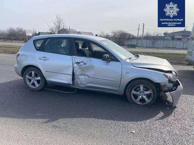 В Днепре сегодня, 10 марта, на выезде из города автомобиль Mazda врезался в дорожный знак.