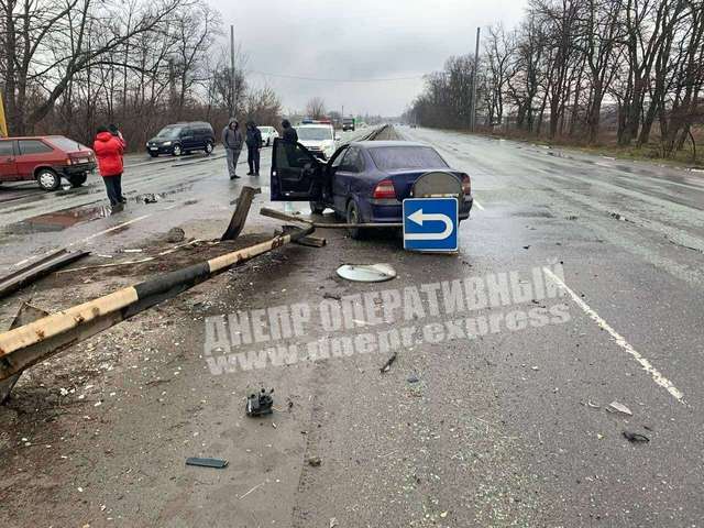 ДТП произошло около 10:30 на 30-м километре автодороги Днепр-Царичанка-Кобеляки-Решетиловка. Автомобиль ВАЗ 2108 буксировал Opel Vectra. Совершая разворот, Opel выехал на полосу движения ВАЗ 2107, перегородив последнему дорогу буксировочным тросом. Водитель легковушки не успел среагировать - в результате ДТП машина получила серьезные механические повреждения, также повреждены отбойник и дорожный знак. Пострадал мужчина, который был за рулем ВАЗ 2107 - его доставили в 6-ю городскую больницу Днепра.