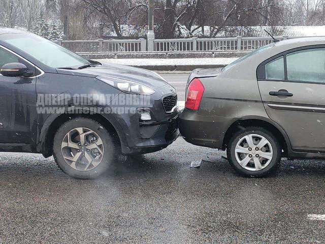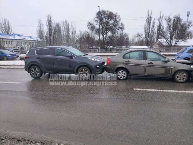В Днепре сегодня, 25 марта, на виадуке на Слобожанском проспекте произошло тройное ДТП. Здесь столкнулись Kia, Hyundai и Renault.