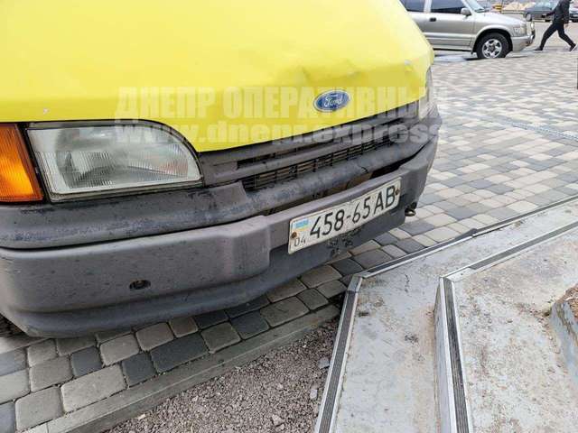 В Днепре сегодня, 27 марта, Ford Transit врезался в ступени магазина "Ева", расположенного на проспекте Гагарина, 99.