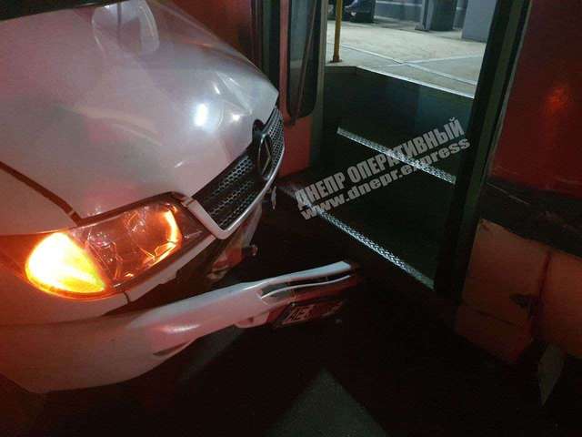 В Днепре трамвай 6-го маршрута врезался в микроавтобус Mercedes-Benz: в происшествии никто не пострадал.