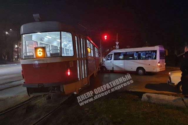 В Днепре на улице Каруны трамвай протаранил микроавтобус