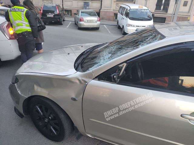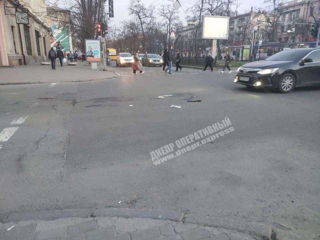 ДТП со сбитым пешеходом произошло на проспекте Дмитрия Яворницкого. Водитель Mazda ехал по направлению к площади Старомостовой на зеленый сигнал светофора. В этот момент на красный сигнал для пешеходов проспект начал перебегать мужчина. Водитель легковушки начал маневрировать, пытаясь избежать столкновения, но в итоге задел пешехода задней частью кузова.