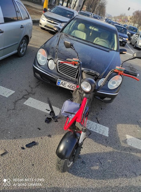 8 апреля на проспекте Богдана Хмельницкого возле больницы №16 случилось ДТП. Там столкнулись Mercedes и скутер.