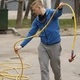 Председатель ОСМД «Героев-35» Галина Фролова высаживает кусты там, где жители выразили желание создать полноценную зеленую зону.