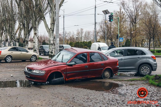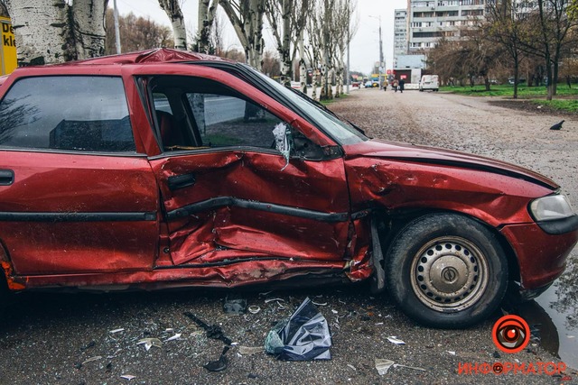 В Днепре на Маршала Малиновского столкнулись Opel и Mitsubishi: автомобили вынесло на тротуар