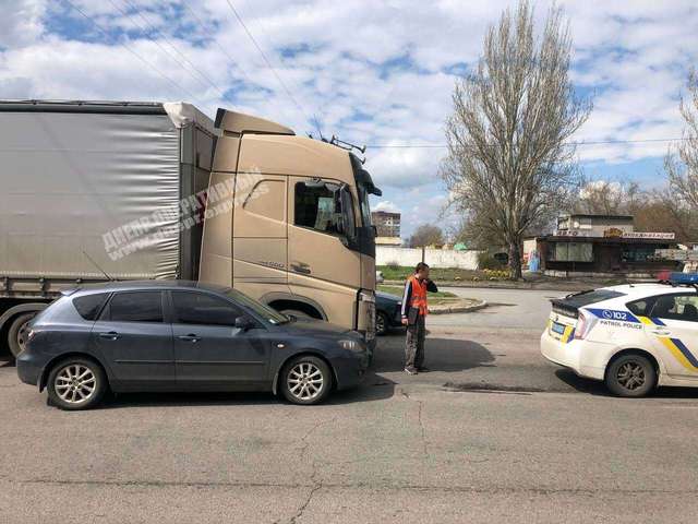 Так, напротив здания 124 М на Донецком шоссе водитель легковушки Mazda 3 "притерся" к грузовику Volvo с полуприцепом Schmitz. Приехавшие на место ДТП патрульные составили на водителя Mazda админпротокол по ст. 124 КУоАП (Нарушение участниками дорожного движения правил дорожного движения, повлекшее повреждение транспортных средств, груза, автомобильных дорог, улиц, железнодорожных переездов, дорожных сооружений или другого имущества).
