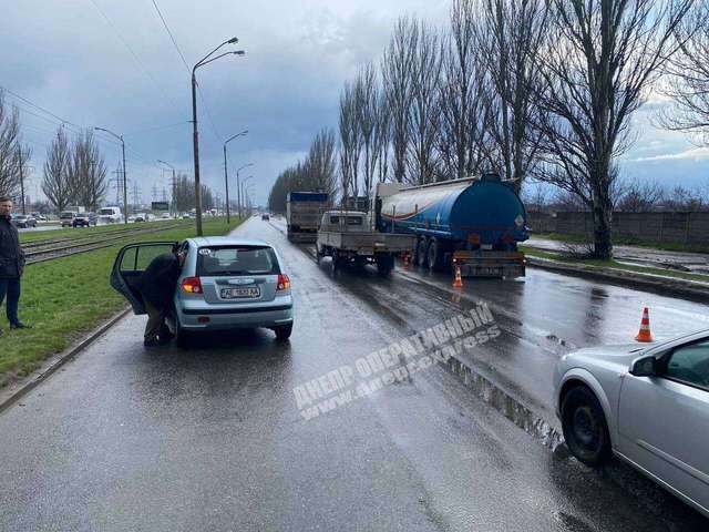 В Днепре сегодня, 16 апреля, на Донецком шоссе произошло сразу два дорожно-транспортных происшествия с участием грузовых и легковых автомобилей.