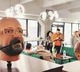 Выставка получилась очень необычной. В зале арт-пространства поставили пьедесталы, на которых разместили пластиковые головы известных политиков с информацией о них. А у каждого пьедестала поставили… крышку гроба, - очевидно, символизирующую политическую смерть данного политика.