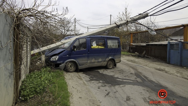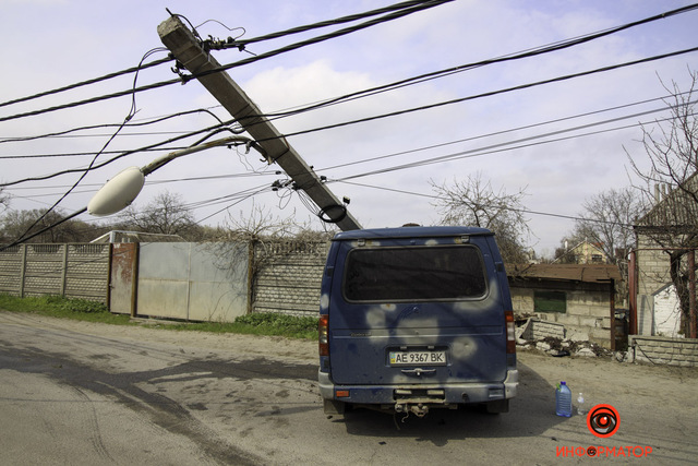 В понедельник, 19 апреля, около 10:25 на улице Мостовой случилась авария. Микроавтобус въехал в электроопору, в результате чего та упала него.