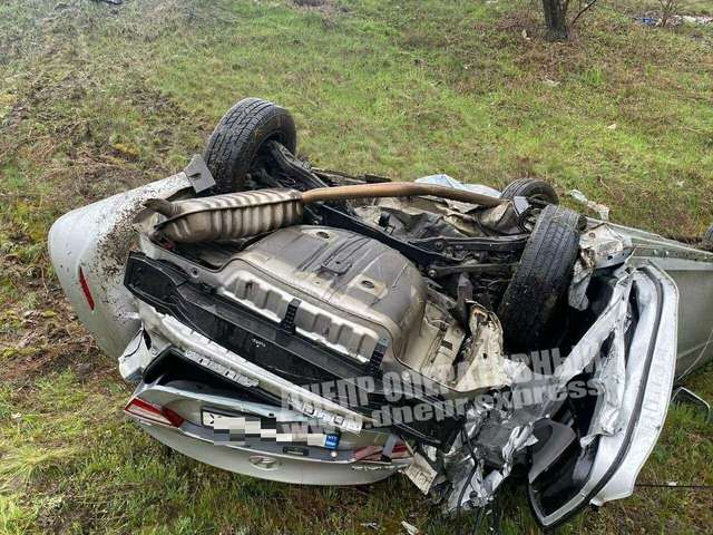 ДТП произошло около 16.30 на въезде на Кайдакский мост со стороны левого берега. По предварительной информации, Hyundai выехал на обочину, ударился об биллборд, после чего машину откинуло в кювет, где авто перевернулось.