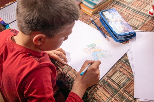 Мальчик – творческий. Любит рисовать и выжигать по дереву.
