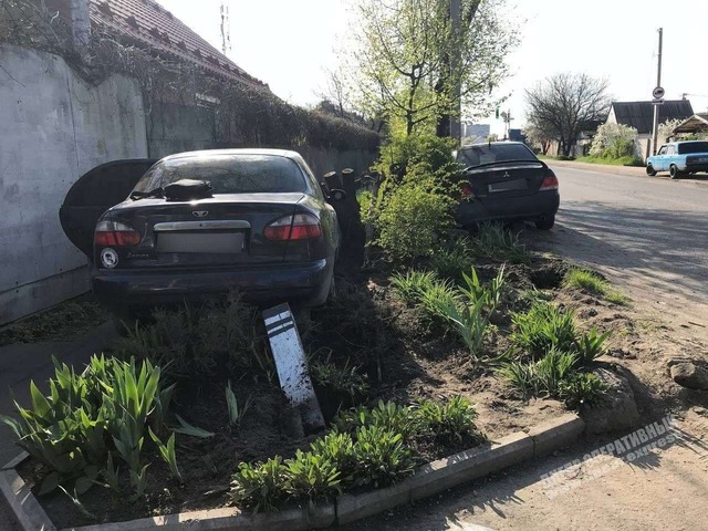 В Днепре сегодня, 1 мая, произошло ДТП с участием легковых автомобилей Daewoo Lanos и Mitsubishi Lancer: оба автомобиля после столкновения вылетели на клумбу.