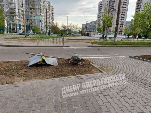 В Днепре в понедельник, 2 мая, водитель на ВАЗ 2107 снес урну и дорожный знак на проспекте Мира 2К, после чего уехал с места ДТП.