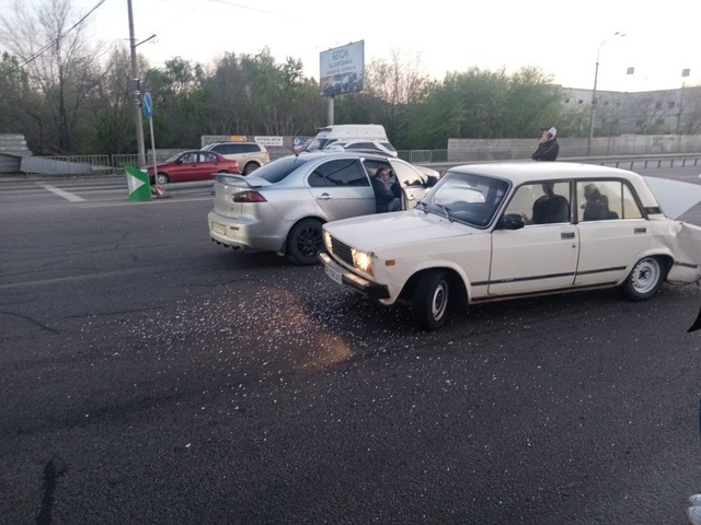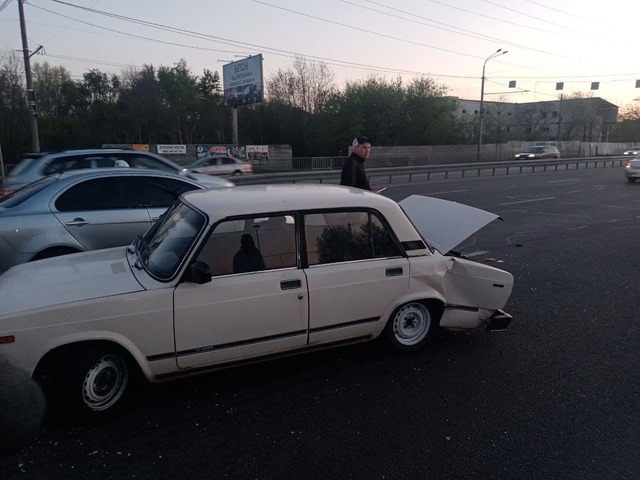 Судя по значкам на заднем стекле Жигулей, за рулем сидел начинающий водитель. Пострадавших в аварии нет. На данный момент полиция еще не прибыла на место происшествия. Движение по Набережной Заводской затруднено.