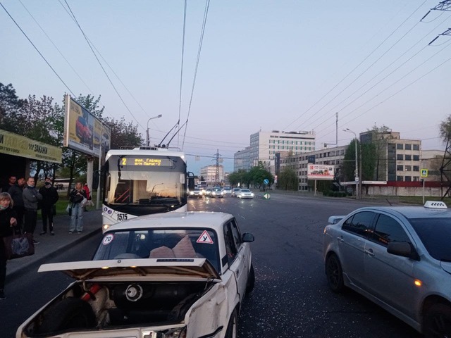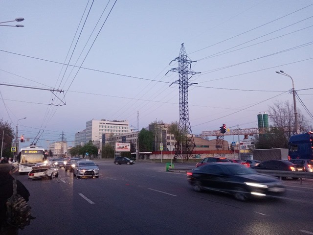 Автомобили проезжают только по одному ряду, троллейбусы стоят. Кто виноват в ДТП будут выяснять правоохранители.