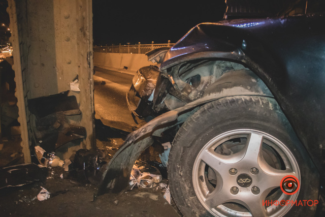 Chery двигался по Амурскому мосту в сторону Старомостовой площади. По предварительной информации, водитель не справился с управлением и врезался в опору.