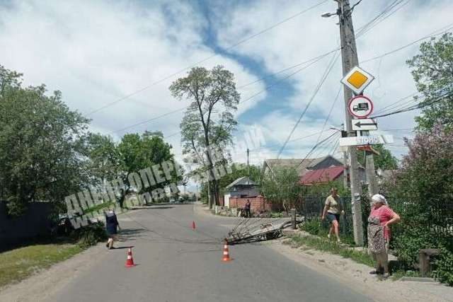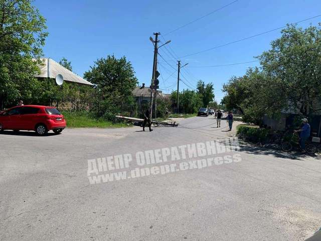 В Днепре на улице Моторной сегодня, 23 мая, грузовой автомобиль снес столб - водитель уехал с места ДТП.