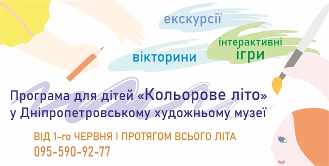 1-го июня в Днепропетровском художественном музее стартует специальный проект для детей «Цветное лето», который будет продолжаться до сентября.