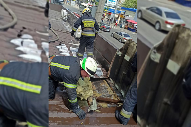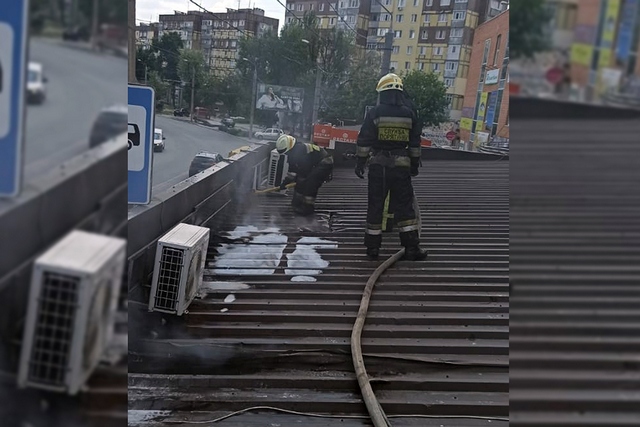 По прибытию к месту вызова сотрудники ГСЧС установили, что пожар возник на крыше одноэтажного торгового павильона по продаже непродовольственных товаров.