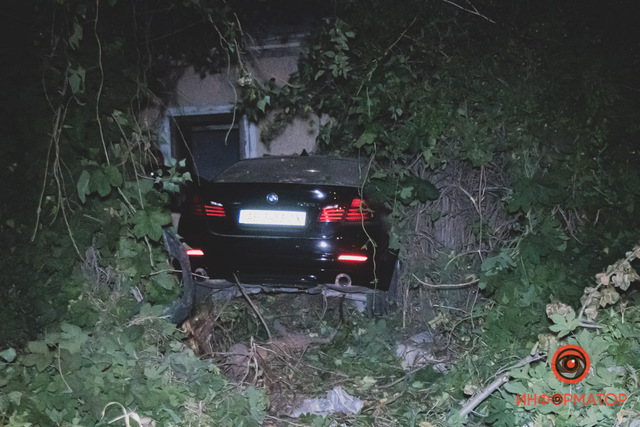 В Днепре на перекрестке Солончаковой и Отечественной BMW влетел в заброшенное здание