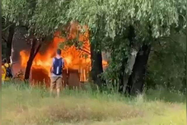 Очевидцы сообщают, что горела беседка. По прибытии спасатели установили, что объект не эксплуатируется. Они локализовали пламя в 18:01, а потушили полностью через 12 минут. Площадь возгорания — 80 квадратных метров.