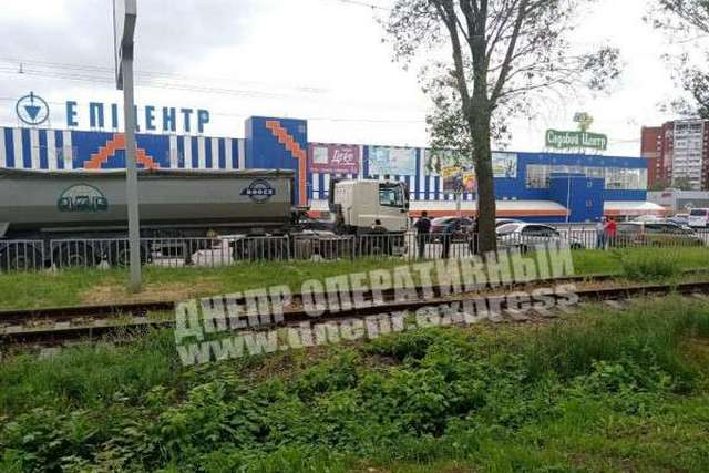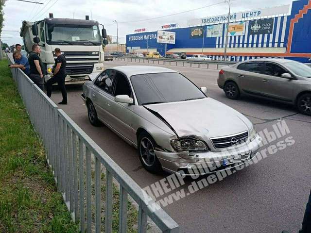 В Днепре на Запорожском шоссе напротив ТЦ "Эпицентр" сегодня, 31 мая, произошло тройное ДТП - здесь столкнулись грузовик DAF, Volkswagen и Opel.