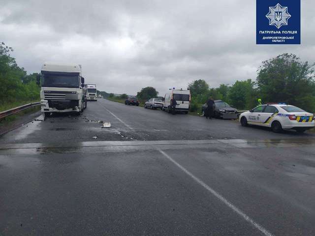 В Днепропетровской области на 133-м км трассы М-29 Харьков-Днепр произошло дорожно-транспортное происшествие с участием Geely и DAF.