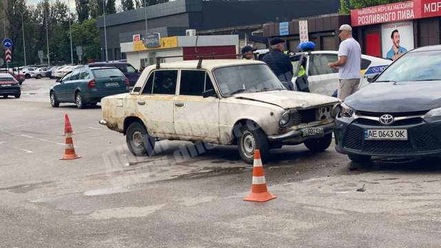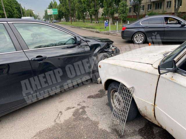 Сегодня, 4-го июня, примерно в 17:00 в Днепре на перекрестке улицы Батумской и проспекта Петра Калнышевского произошло ДТП. Водитель автомобиля ВАЗ двигался по главной по проспекту Петра Калнышевского, а водитель автомобиля Toyota ехал по второстепенной по улице Батумской, и посередине перекрестка машины столкнулись.