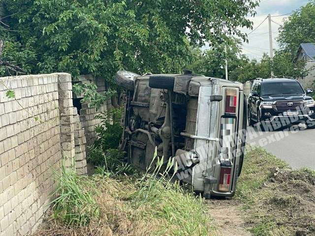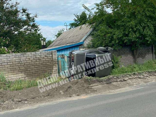В Днепре на улице Петрозаводской сегодня, 5 июня, ВАЗ вылетел с дороги - автомобиль перевернулся на бок.