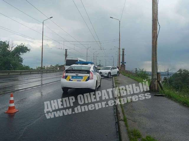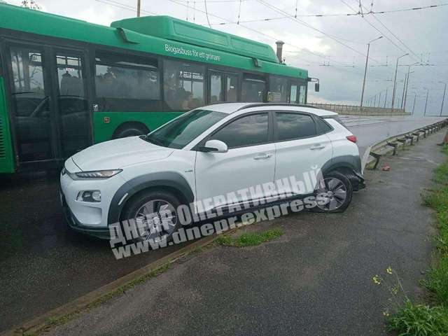 В Днепре на Амурском мосту сегодня, 7 июня, внедорожник Hyundai вылетел в отбойник - водитель авто не справился с управлением.