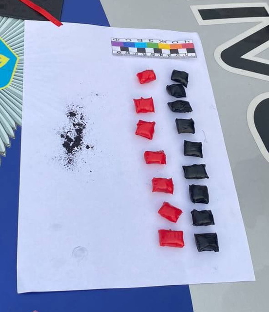 Во время поверхностной проверки, в кармане его куртки, инспекторы обнаружили сверток. По словам мужчины, с наркотиком, а в сумке еще 16 свертков. Также полицейские обнаружили несколько пустых слип-пакетов, изоляционную ленту, пинцеты и лопатку.
