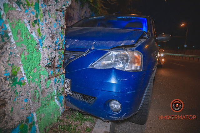 Авария случилась примерно в 20:50 недалеко от Кайдакского моста. По предварительной информации от патрульных, Dacia ехала по Набережной Заводской от Кайдакского моста. В повороте водитель не справился с управлением и авто врезалось в бетонное основание электроопору.