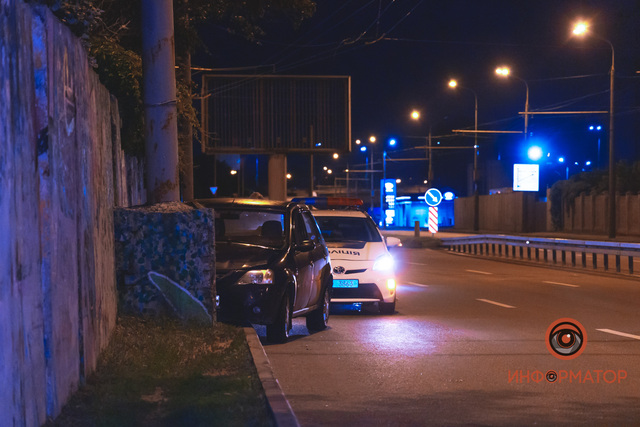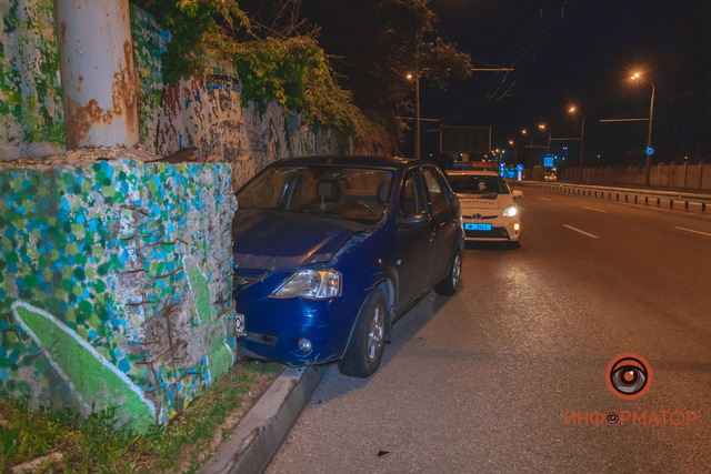 В Днепре на Набережной Заводской нетрезвый водитель Dacia врезался в столб
