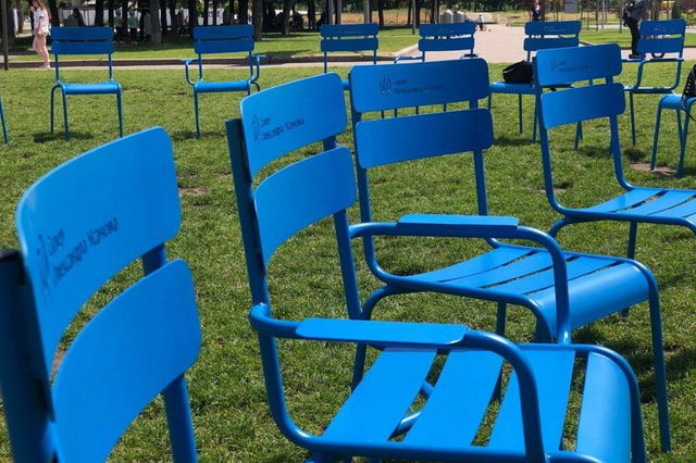 Городской сайт уже сообщал об установке таких практичных и красивых стульев синего цвета в сквере Усачева на левом берегу Днепра. Партия этой уличной мебели с логотипом города и сквера была специально изготовлена для активно обустраиваемой в последнее время зоны отдыха в районе ДК Металлургов.