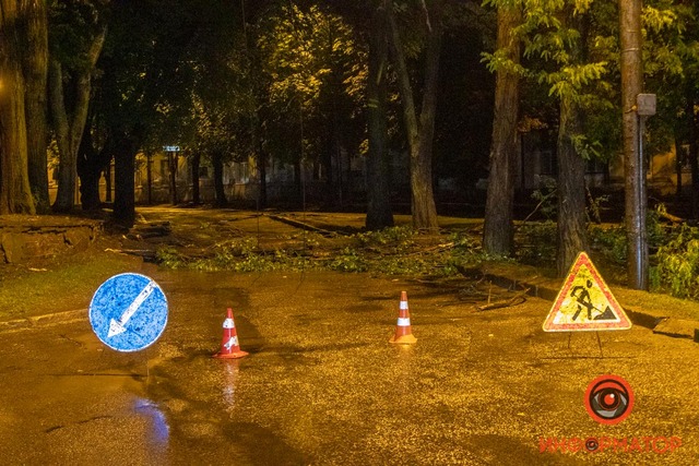 Дерево упало около 23:00. Оно оборвало провода, которые после этого свисали над проезжей частью.