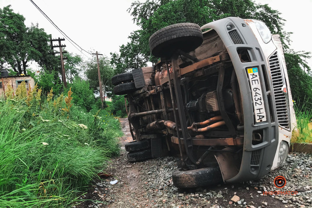 В пятницу, 18 июня, в Днепре на улице Горяной заметили перевернутый автомобиль Газель. Водителя на месте не было.