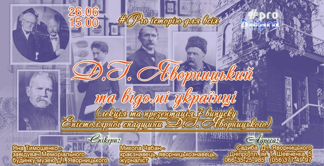 В ближайшую субботу, 26 июня, в Доме-музее Дмитрия Яворницкого пройдет презентация 7-го тома его эпистолярного наследия.