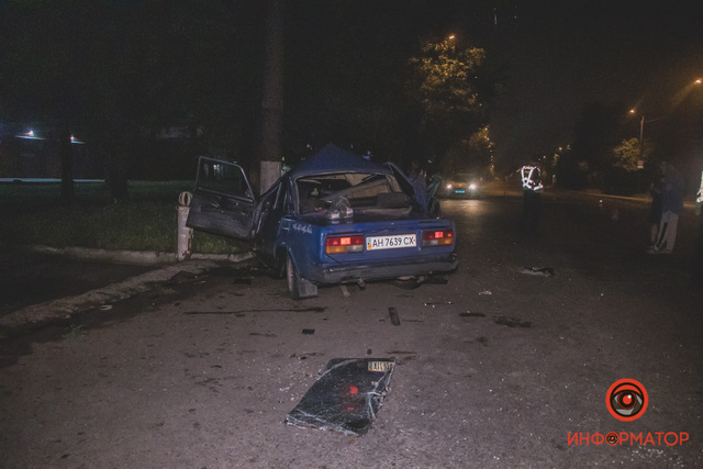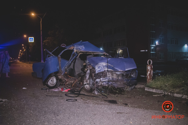 В Днепре на проспекте Богдана Хмельницкого ВАЗ врезался в столб: водителя увезла скорая