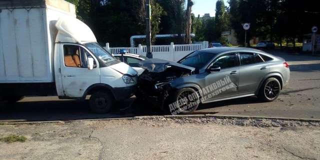 В Днепре на перекрестке Байкальской и Тверской произошло тройное ДТП. Внедорожник Mercedes врезался в полицейское авто, а затем в грузовик.