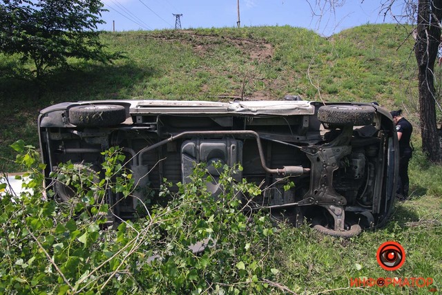 В пятницу, 2 июля, около 11:30 на Кайдакском мосту случилось ДТП. При заезде на мост, водитель Renault не справился с управлением и слетел в кювет.