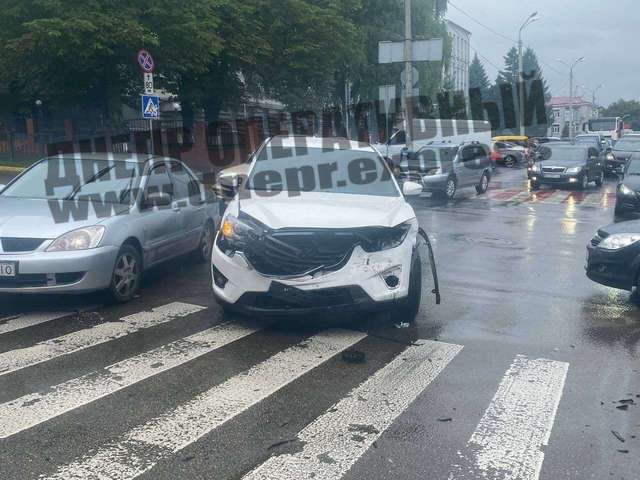 В Днепре на перекрестке Троицкой и Святослава Храброго Kia врезалась в Mazda, есть пострадавшая: видео момента