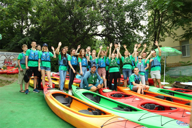 Участники мероприятия плавали на байдарках и каяках, очищая Днепр и его берега от мусора.