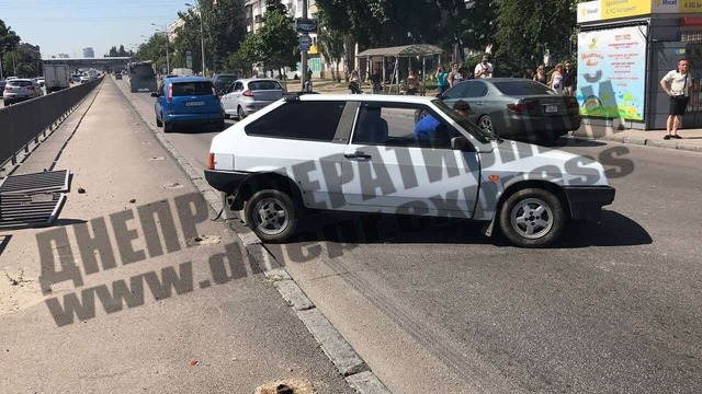 Авария произошла 15 июля, около 10:40. ВАЗ ехал по Слобожанскому проспекту в сторону Нового моста. По словам водителя, во время движения вышли из строя тормоза автомобиля. Из-за неисправности машину повело, ВАЗ врезался в ограждение, снес его и вылетел в другой ряд.