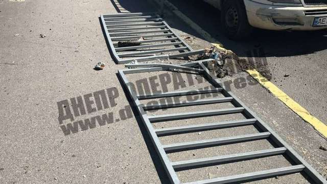 В Днепре на Слобожанском проспекте водитель ВАЗа врезался в ограждение и снес его. Предварительно, мужчина не справился с управлением из-за поломки тормозов.