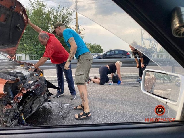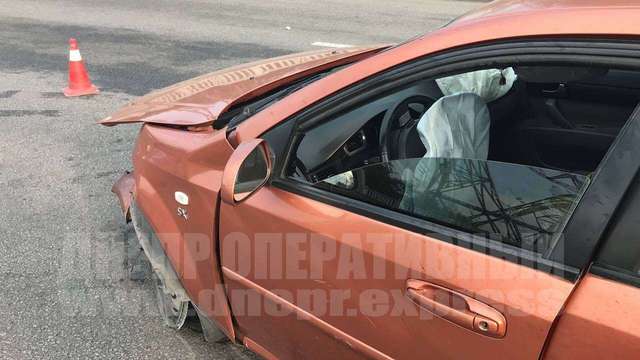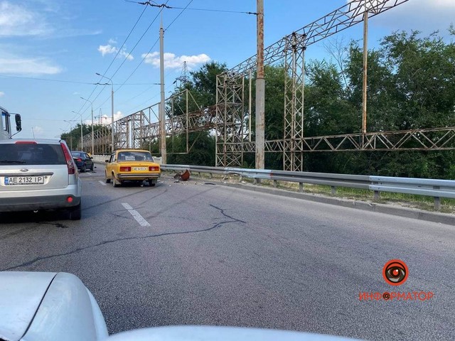 В субботу, 17 июля, на Набережной Заводской, недалеко от Кайдакского моста случилось ДТП. Chevrolet Lacetti на скорости влетел в отбойник.