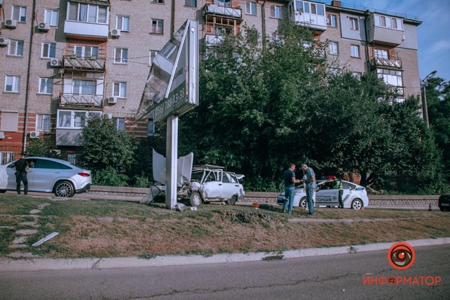 В Днепре возле памятника Славы ЗАЗ врезался в билборд: водитель в больнице