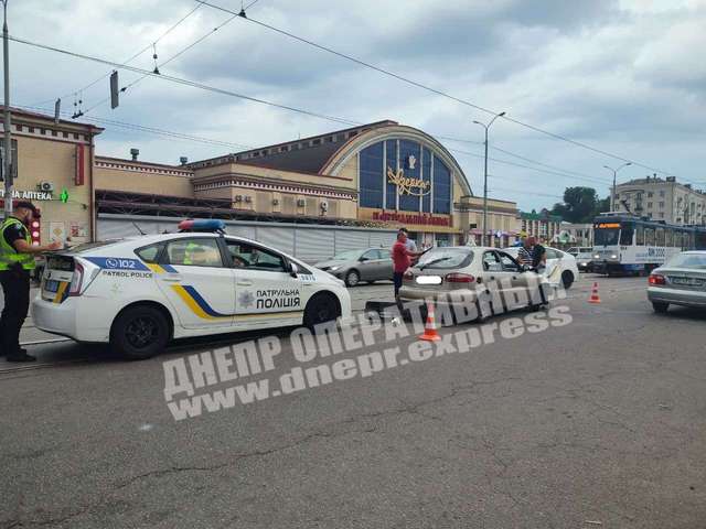 В Днепре напротив рынка "Озерка" Mitsubishi врезалась в Daewoo. В результате аварии движение общественного транспорта было временно затруднено.