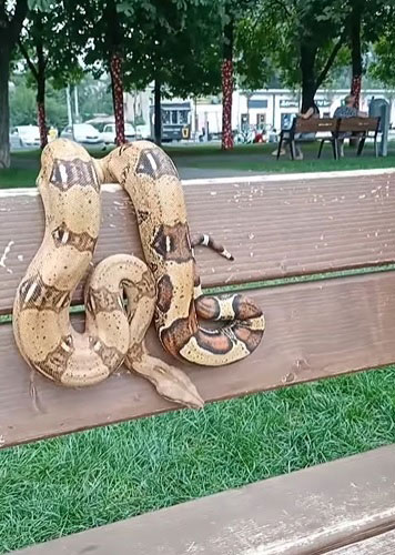 Спешим успокоить зоозащитников. 2-летний удав Сэм не предназначен для фотосессий и прочих платных развлечений. Его хозяйка Алина живет в этом районе и просто выносит удава подышать свежим воздухом.