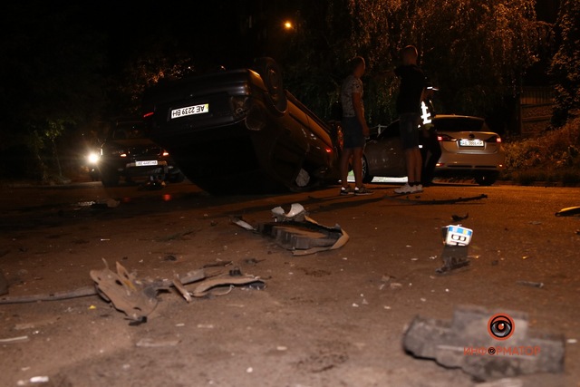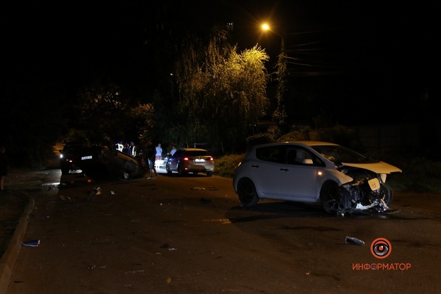 В Днепре на Лабораторной Nissan столкнулся с Opel: Opel перевернулся